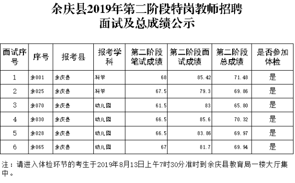 2019年余慶縣第二階段特崗教師招聘面試及總成績公示