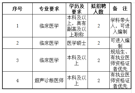 現因醫(yī)院業(yè)務發(fā)展需要,擬面向社會進行臨床醫(yī)學人才引進,計劃如下: