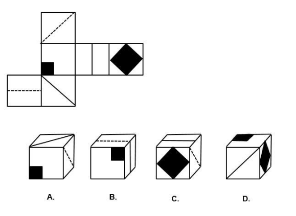 52.左邊給定的是紙盒的外表面,以下哪一項能由它折疊而成( )