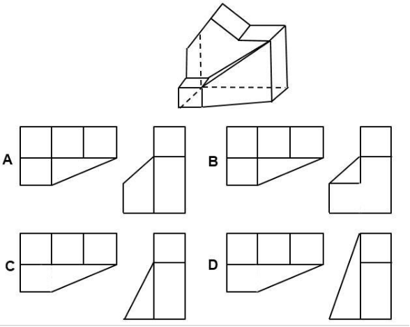 54.下邊是給定的立體圖形,以下哪一項是該立體圖形的俯視圖和側(cè)視圖( )