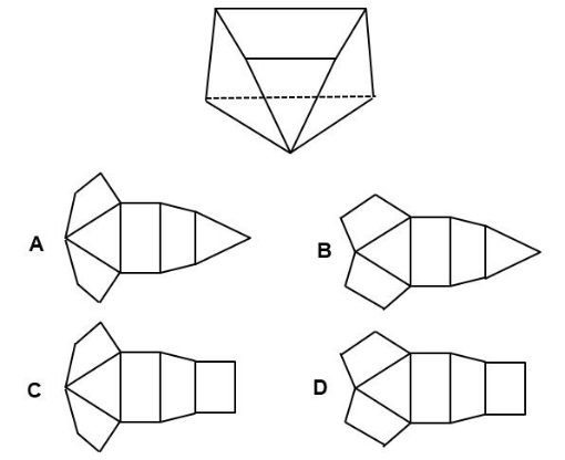 53.下邊是給定的立體圖形,以下哪一項是該立體圖形的外表面展開圖( )