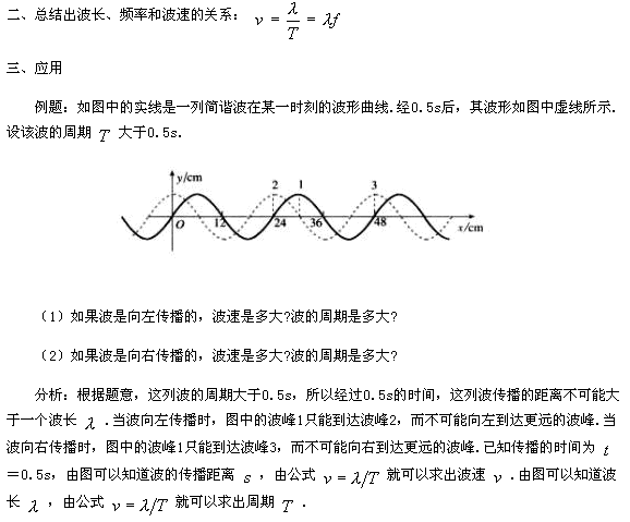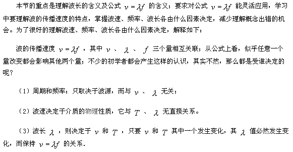 3、掌握波長、頻率和波速之間的關系,并會應用這一關系進行計算和分析問題;