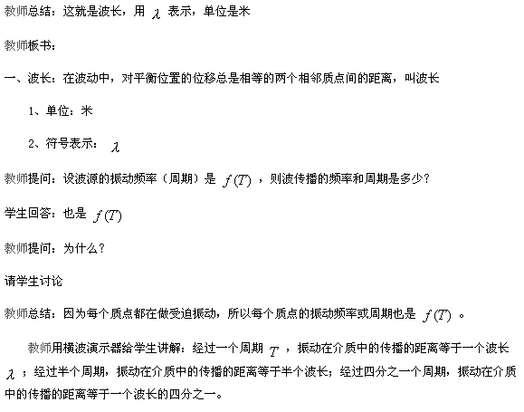 教師提問:相鄰的振動完全相同的質點間的水平距離都相等嗎?請學生討論。