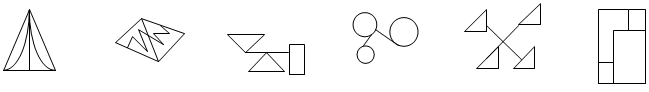 例題:把下面的六個(gè)圖形分為兩類,使每一類圖形都有各自的共同特征或規(guī)律,分類正確的一項(xiàng)是: