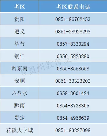 (二)考生如有任何疑問,請及時與所報考區(qū)聯(lián)系,各考區(qū)咨詢電話如下:
