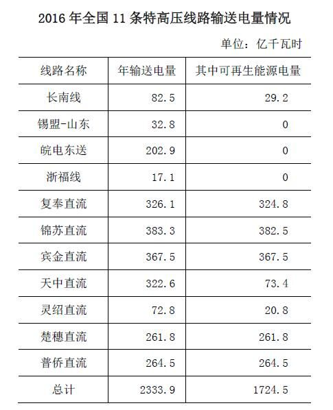 88、11條特高壓線路中,輸送可再生能源電量占2016年輸送電量一半以上的線路有多少條?